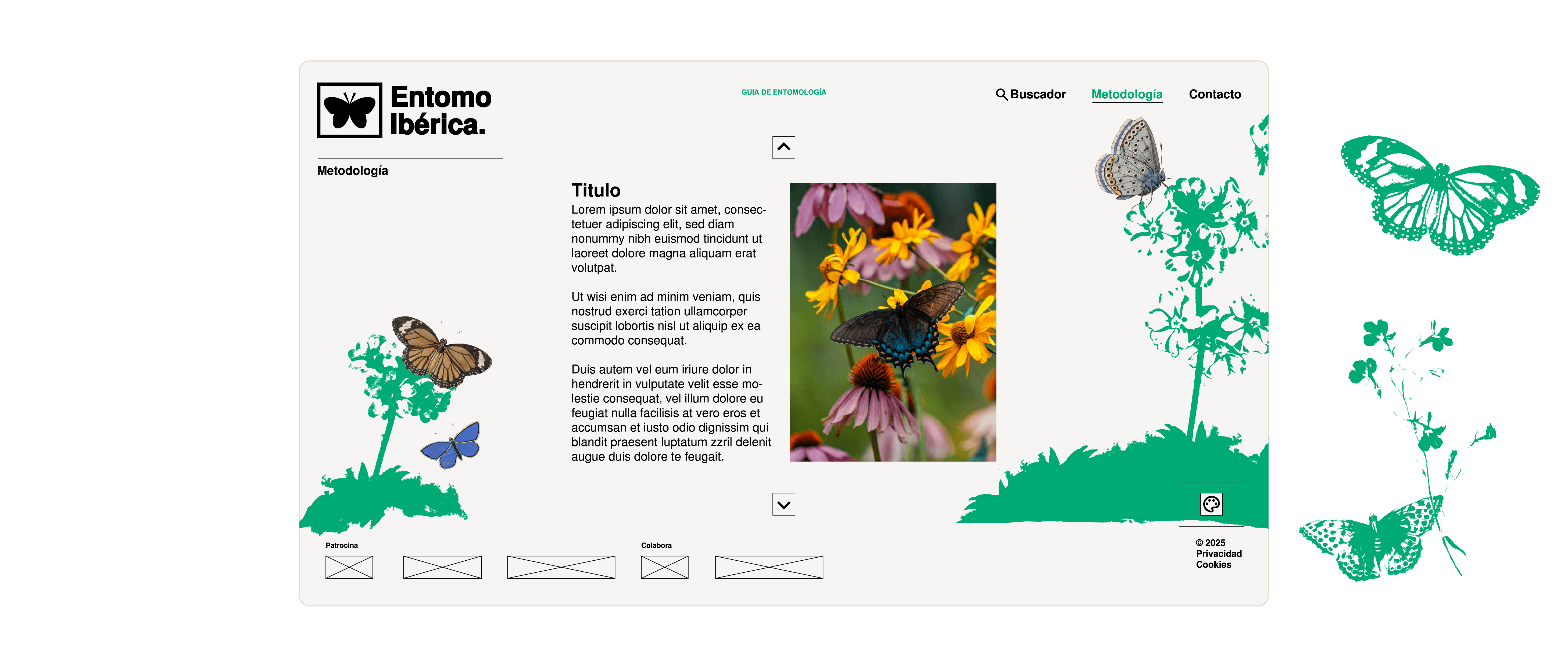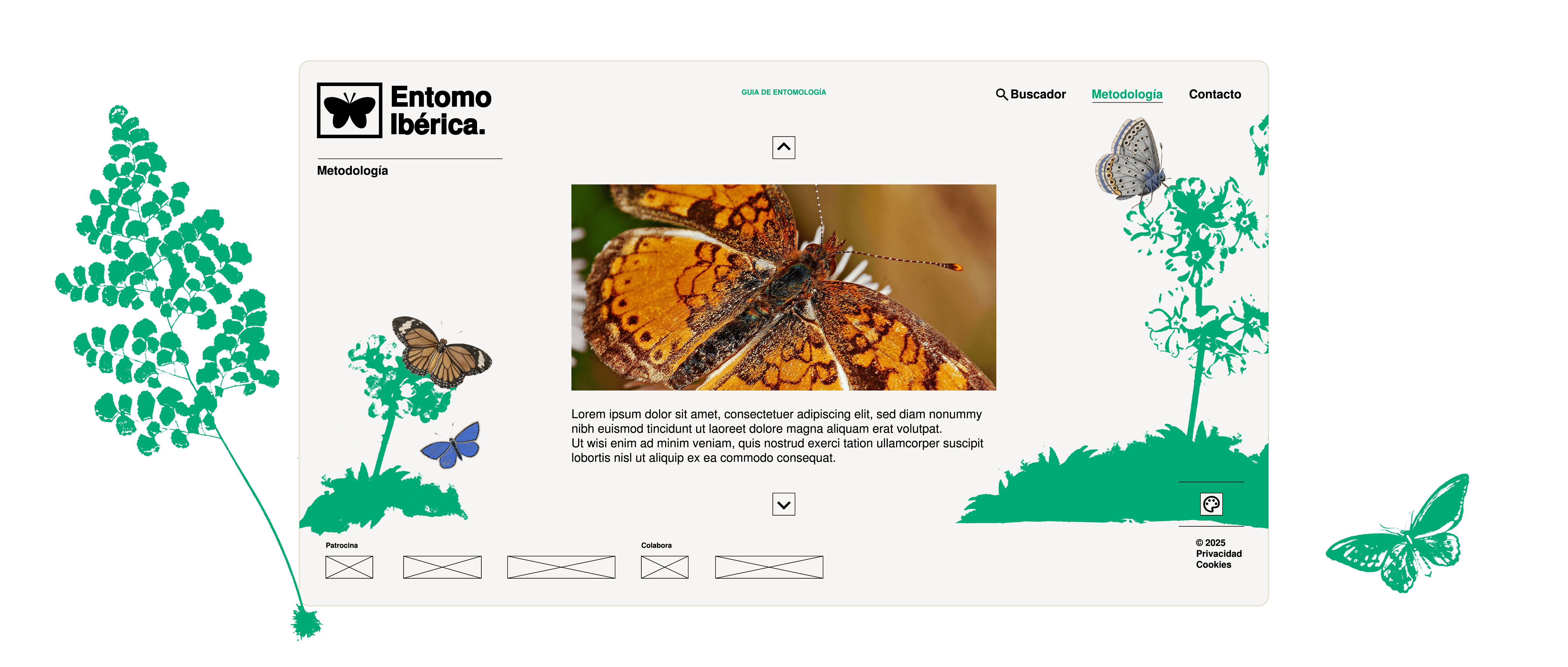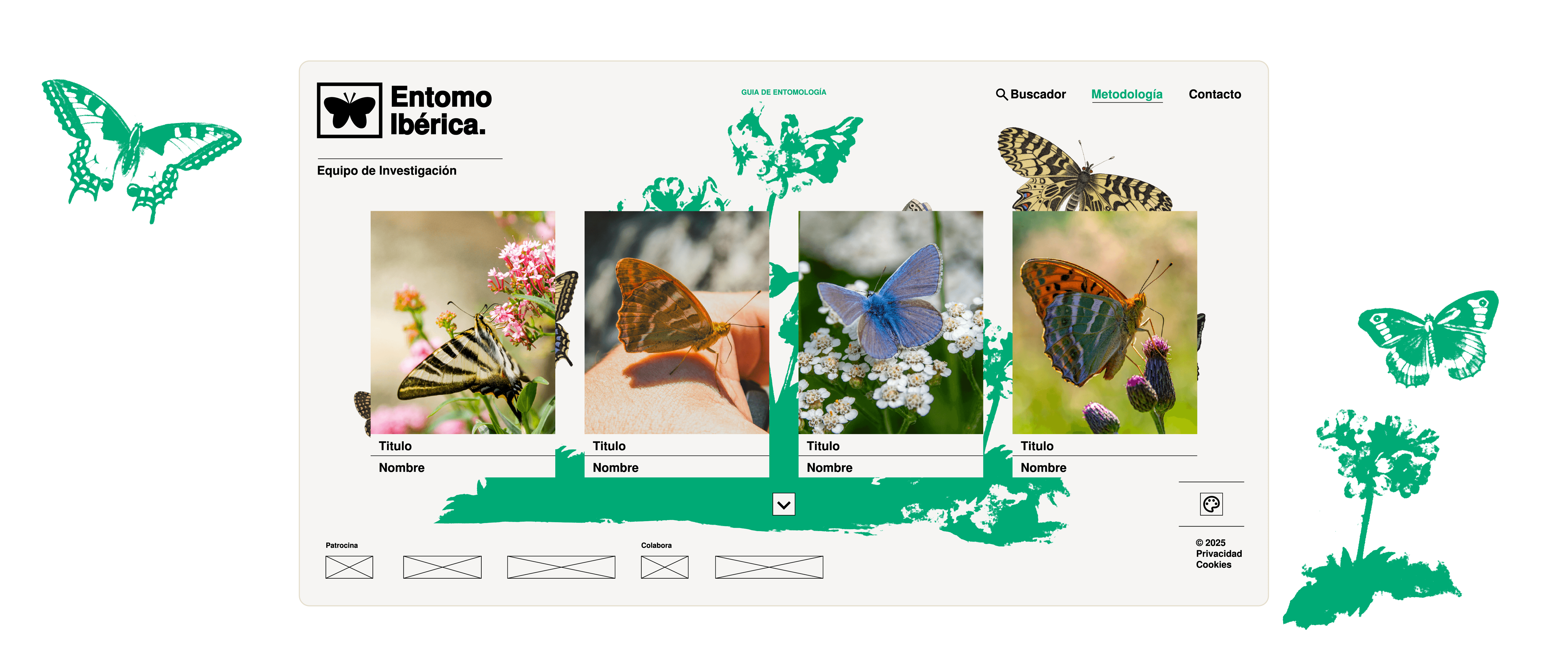 Visual identity and website design for a research group focused on entomology. Developed as a digital archive with a clear and search-focused user experience.